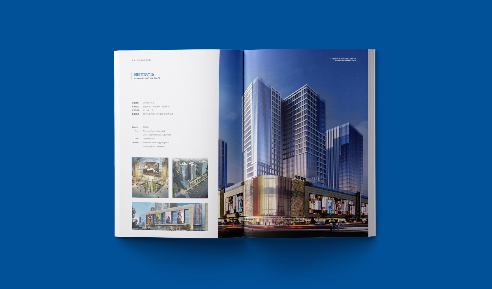河南业豪幕墙有限公司成立于2002年,业务涉及幕墙工程、金属门窗工程、玻璃加工与销售、高档建筑门窗、钢结构工程,是集设计、研发、加工生产、施工安装为一体的综合性建筑装饰企业。2018年10月业豪幕墙委托郑州树标文化传播有限公司,为其进行宣传画册设计与制作。画册整体设计大气简约、照片及细节处理精细,内页主要以科技蓝为主,将公司企业文化、产品、先进的技术设备、企业案例等以“图多字少”的方式展示,言简意赅却能深刻地展示企业雄厚的实力及高端的品质,再加以精美地装订工艺,便将其演变成为业豪幕墙对外商业交流与招商投资的有力工具!